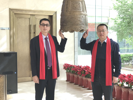 總公司董事長(zhǎng)劉東幸和副董事長(zhǎng)施兵共同敲響了掛牌銅鑼,共同見證了這具有歷史意義的一刻。
