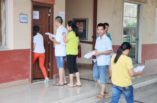 本次體檢項(xiàng)目包括血壓、血常規(guī)、內(nèi)科、肺功能、心電圖檢查等,對(duì)涉及職業(yè)危害的粉塵和噪聲等崗位進(jìn)行了肺功能、電測(cè)聽等職業(yè)病防治監(jiān)護(hù)檢查。為做好此次體檢工作,公司行政人事部提前與廣西水電醫(yī)院工作人員聯(lián)系體檢事宜,針對(duì)不同工種的員工,體檢項(xiàng)目也作了相應(yīng)區(qū)分,并要求各單位提前做好相關(guān)準(zhǔn)備工作。