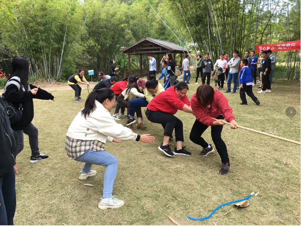 懷著激動(dòng)的心情,經(jīng)過短暫的車程后,大家于10:00左右來到本次活動(dòng)的目的地--長龍歡樂谷山莊。首先,分組進(jìn)行了豐富多彩的體育運(yùn)動(dòng),有六人單腳跳、運(yùn)輸氣球、拔河等項(xiàng)目。在運(yùn)動(dòng)中,大家團(tuán)結(jié)協(xié)作、歡聲笑語,平日里高強(qiáng)度的工作壓力被釋放一空。活動(dòng)拉近了同事之間的距離,更增強(qiáng)了集體榮譽(yù)感。